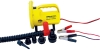 12 Volt Hi Pressure Air Pump w/ Pressure Release Valve produces 3 times the pressure of other 12 volt air pumps. Adapters are provided for all popular valves including stem, Boston, Leafield, Bravo, Hulkey Roberts and more. A removable pressure release valve limits the output to 1.4 psi, the perfect inflation pressure for towables. This powerful pump draws too many amps to plug into a cigarette lighter. Hook it up to your car, truck or boat battery with the alligator clips connected to a 10' power cord. Volume: 410 liters/min. Draws 28 amps.