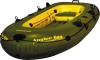 Angler Bay Inflatable Boats are designed to give you all the components you need to have a great fishing adventure. There are 2 rod holders, multiple molded drink holders, 4 drain plugs, a battery storage bag and a ditty bag. They're lightweight, portable and ideal for lakes and slow moving streams. Equipped with wrap-around grab lines, swiveling oar locks, trolling motor transom mounts and side mounted oar holders. Constructed of heavy duty vinyl with electronically welded seams. Factory tested for quality assurance. Angler Bay boats also come with locations for motor mounts. Comfort features include an inflatable floor and a movable seat. Patented Speed Safety Valves for quick inflating and deflating. 4 rider, 109" x 56". 30 gauge.