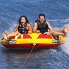 Turbo Blast is not only a head turner; it is one hot riding tube! The 90" x 56" (229 x 142 cm) double open top, 2 person tube, has a rugged double stitched 840-denier nylon cover with 2 self-draining floor vents. Their welded 30-gauge virgin PVC bladder is equipped with an Airhead Multi-Valve; the ultimate in inflating and deflating convenience. Four deluxe handles with neoprene knuckle guards ensure a comfortable grip. You'll really appreciate the heavy-duty Kwik-Connect every time you hook-up your tow rope.