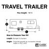 Zippered panels allow complete access to all entrances. Triple-ply PolyPRO 3 keeps out rain and snow. Thick, triple-ply top and single-ply sides protect against rain, snow, dirt, nicks and scratches for all-season protection. An integrated air vent system combined with quick drying PolyPRO sides reduce wind stress and vent inside moisture. Adjustable front and rear tension panels and elasticized hem corners provide a custom fit. Integrated rope attachment system and a provided toss bag helps reduce crawling under the RV. Zippered panels allow access to the RV doors and engine areas. Stuff sacks are included on all covers. Ladder caps are included.3 Year Warranty. Fits 33' - 35' Travel Trailers.