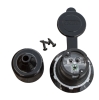 Great for bass boats or a power inlet for RVs! Makes battery charging through an on-board battery charger safer and more convenient. 15A 125V straight blade inlet. Can be mounted almost anywhere. Low profile cap won't catch fishing line. Mounts easily to fiberglass and aluminum hulls. Perma-Lock terminals and color coded wire entrance holes make wiring a snap. UV-resistant housing and cap.15A Power Inlet. Use to provide 15A 125V detachable power to small towables trailers or cabins. Use with any standard 15A extension cord.