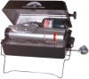 Surface mount base. Wobble-free post. Ceramic coated thermal plate. Built-in regulator for 1 lb. fuel tank. 170 sq. in. cooking area. 110" square griddle surface. 14"W x 20"D x 28"H.